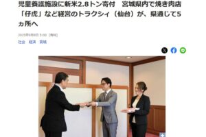 宮城県内の児童養護施設に宮城県産新米2,800㎏を寄贈しました。